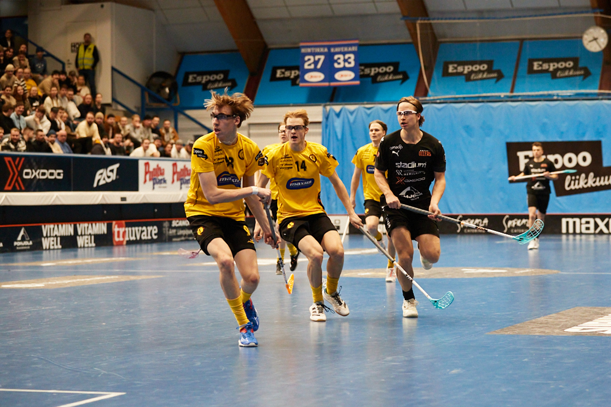 Tapiolan urheiluhallin täysi tupa näki ensimmäisessä erässä vauhdikasta ja laadukasta salibandyä. Kumpikin joukkue oli kääntänyt ruuvia selvästi kohti kevään pelien asetuksia, siksi tarkasti ja kurinalaisesti ne pelasivat.